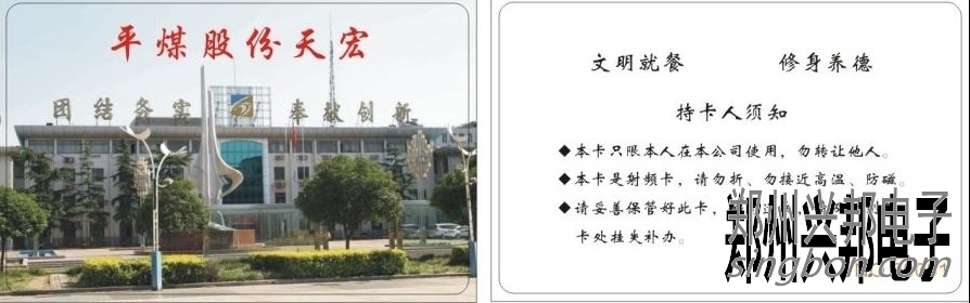 员工们持饭卡到食堂餐厅里的IC卡食堂售饭机上刷卡吃饭。