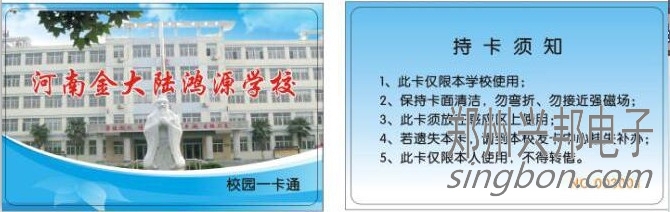 河南金大陆鸿源学校使用校园一卡通系统,学生们每人佩戴一张校园卡,不管是吃饭、洗澡还是饮水都可以使用这张校园卡就可以完成一系列的消费,真的可谓是一卡在手,走遍校园。