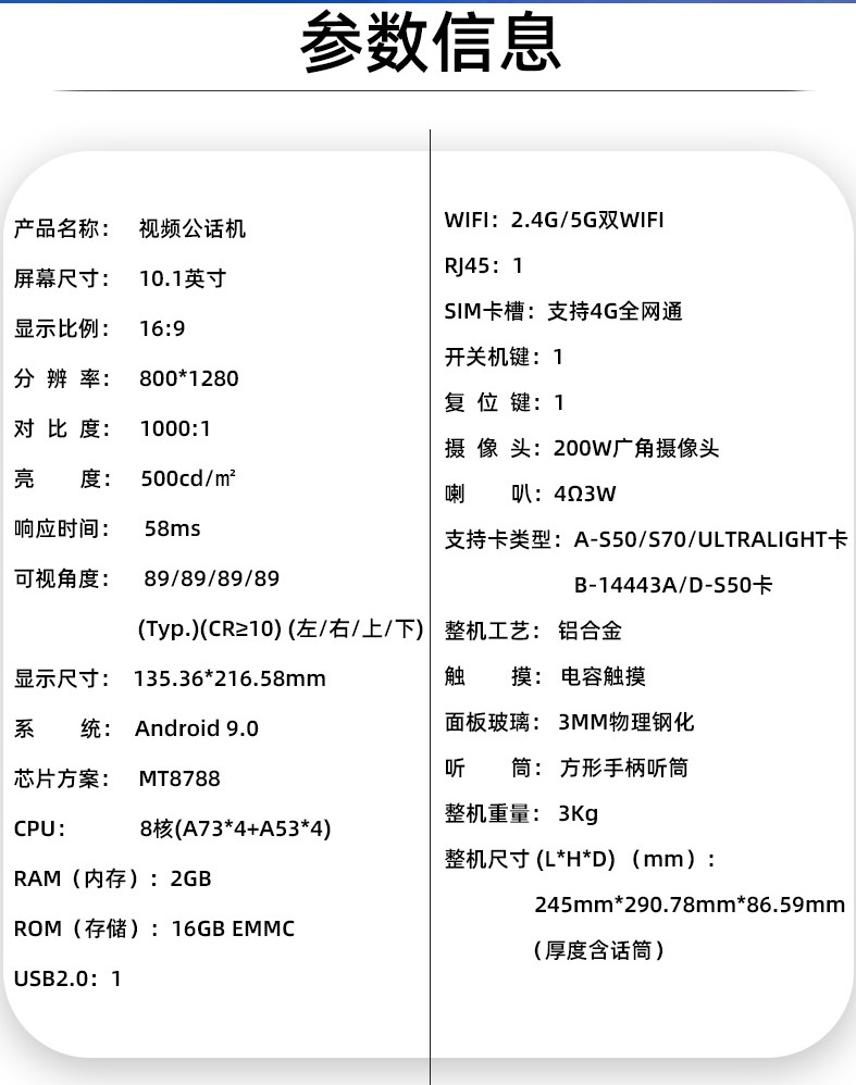 适用场景:10.1寸视频公话机 校园视频电话机 微信视频电话机