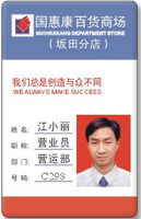 人像卡又称胸卡,也是人像识别卡,是分辨个人资料的信息卡,就是将人像、姓名、编号、图像、条形码及其它资料直接打印在PVC材质上,可以用来做各类工作牌、出入卡、胸卡、会员卡、暂住卡、彩照信用卡、通行证等。