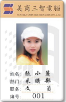 人像识别卡最大的特点是将人像照片经过扫描直接打印在卡上,图像清晰,效果与相片相同。制作人像识别卡的卡基可以是一般PVC卡,也可以是磁卡或IC卡,因客户的用途而定。