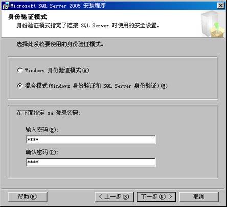 9. 选择混合模式,在下方SA登陆密码中输入密码,此密码录入后必须记着,在之后的操作中要使用。