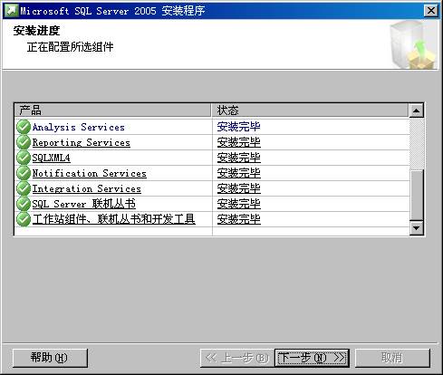 现在就开始安装完整的SQL2005数据库,时间根据你电脑配置而定,直到出现如下界面: