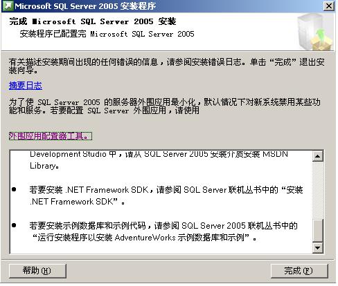 15. SQL2005安装基本完成,点击【完成】。然后重新启动电脑。
