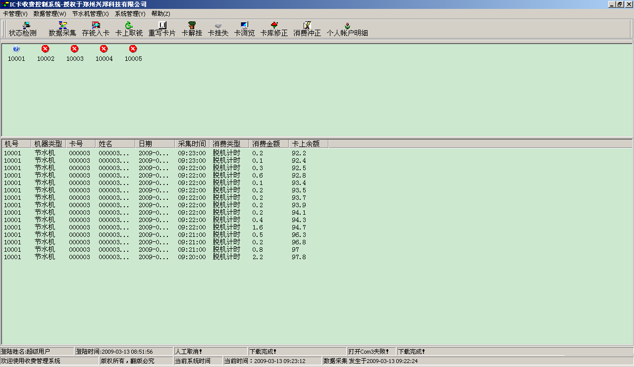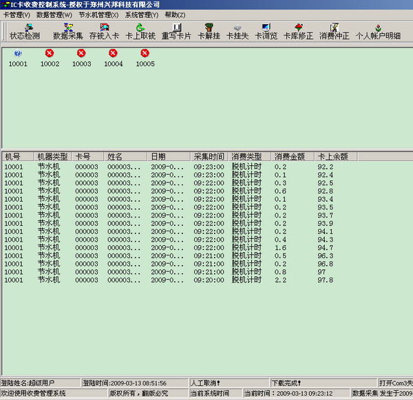数据采集窗口用于查看数据的采集情况,在进行消费的时候,最好不要对水控机进行数据采集,我们不建议对机器进行边操作边进行数据采集。