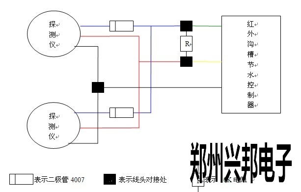 一台红外沟槽节水控制器连接两个红外探测仪线路修改说明