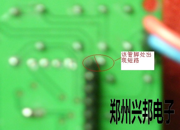 在主板背面测出二极管和指示灯管脚处电路出现短路。(如下图所示)
