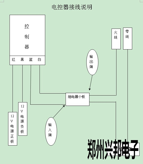 1、继电器小板接线柱标有12V+的的一端是输入端 分别接控制器的蓝线和白线