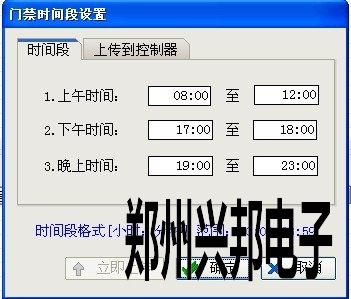 3、设置好要开门的时间段后点击‘确定’进行保存,点击‘上传到控制器’选择相应控制器点击‘立即上传’。