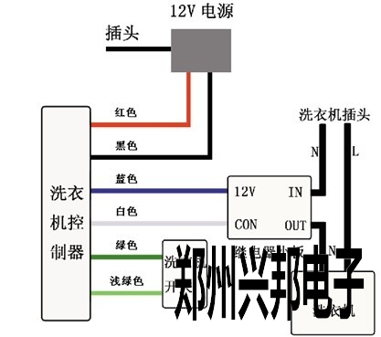 浅绿线(灰)和绿线两根----->接启动开关(刷卡10秒后,这两根线会短路半秒钟钟(相当于按键按下一次),然后断开),