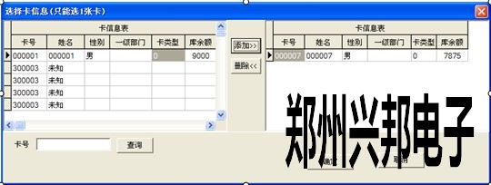 b 在左边的卡信息表中选择挂失的卡号,单击[添加]按钮添加到右边的卡信息表中。
