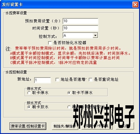 如果设置管理卡修改水控机费率,设置完费率后,只需点击“费率设置卡”即可,不需要点击“控制设置卡”