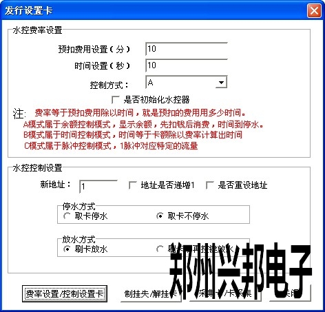 是否初始化水控器,该复选框中对管理卡来说的。如果在设置管理卡的时候选中该复选框,使用管理卡设置预扣费率的同时也初始化了水控机上的所有消费数据。