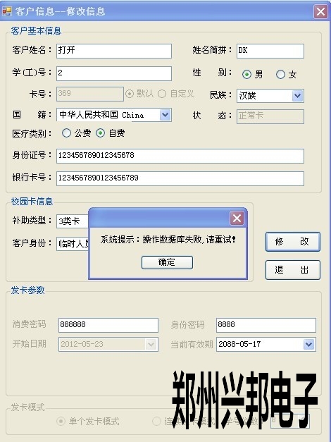 解决方法:经了解客户使用的是3.0的平台,将其更换为4.0的平台就可以了,卡信息就可正常修改。