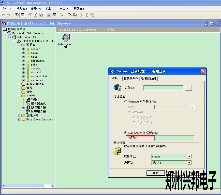 2000数据库安装后忘记密码可以这样操作进行重设,进入2000数据库后在安全性上右击进入此画面
