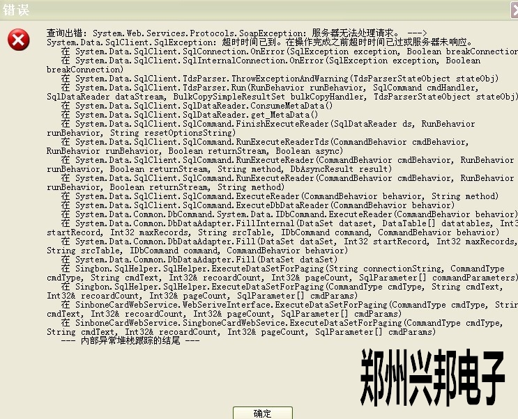 一卡通综合管理平台在查询消费记录表时出现如下的错误提示: