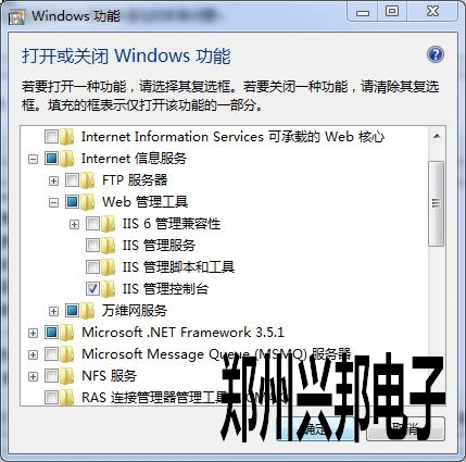 此时把IIS管理控制台勾选上,按确定键即可。