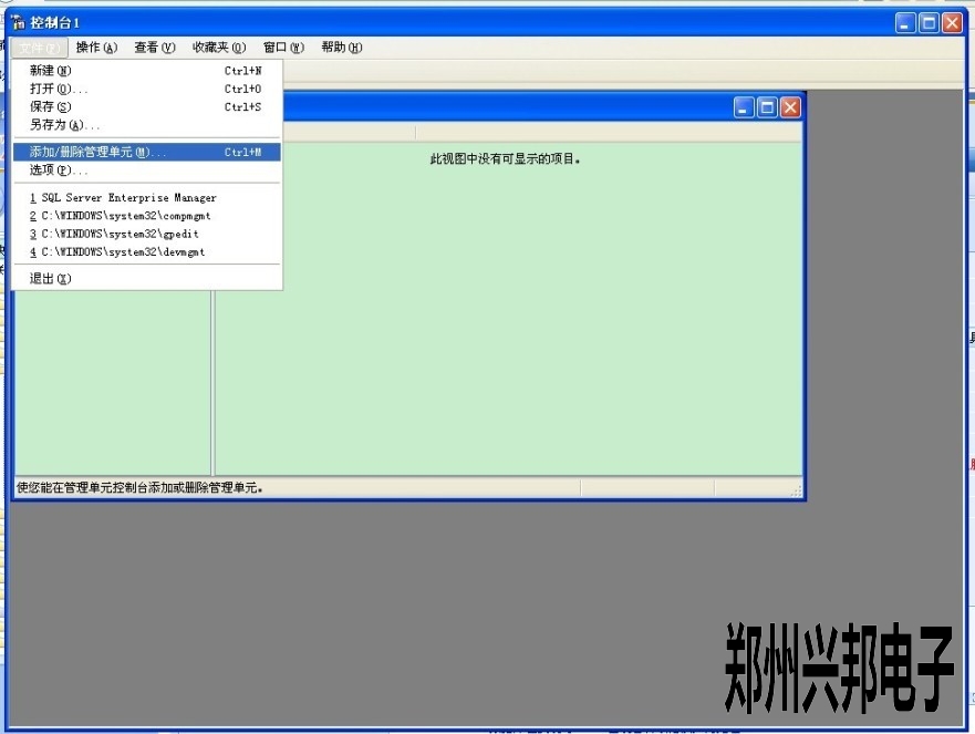 1. 首先把2005数据库安装退出,然后点开始--运行,输入mmc按回车,然后进入控制台,点文件--添加删除管理单元,如下图所示