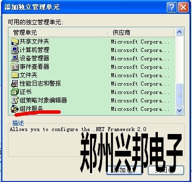把光标点一下组件服务,点添加,然后关闭,如下图