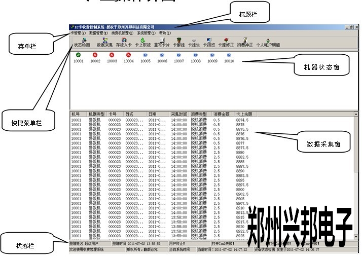 4)数据采集窗口用于查看数据的采集情况,在进行消费的时候,最好不要对收费机进行数据采集,我们不建议边消费边采集数据。
