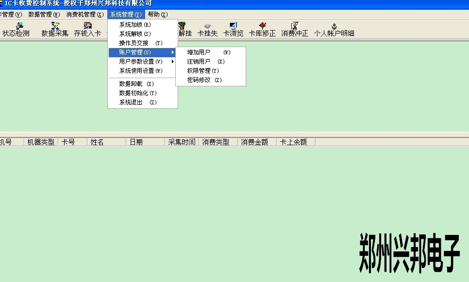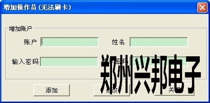 1. 打开485售饭机软件--系统管理--账户管理--增加用户,可以输入账户、姓名、密码,然后点添加后关闭此对话框即可。