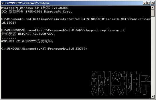 2. 然后在命令行中输入aspnet_regiis.exe -i ,按下Enter,如下图所示安装ASP .NET;