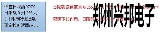 可查询最近7天的消费汇总记录,初始化和采集后还可查看汇总的内容。 ⑧按8号键进入设置日限额界面,如下图所示: u 待机界面按*号键进入查看汇总界面,如下图所示: 可查看未采集的记录数、卡底金、日限额和最近7天的每一天的汇总金额。