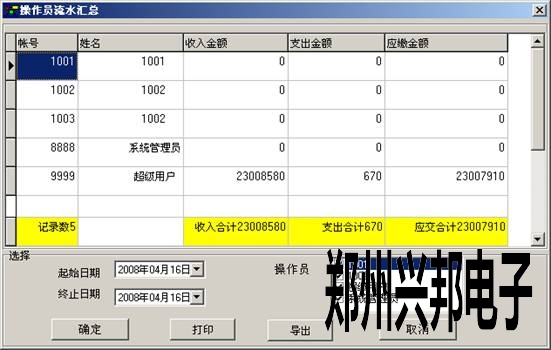 因为软件涉及到金额,所以操作的时候就要求我们谨慎,如果出现问题,就要责任到人,操作员流水汇总表可以查询不同的时间由哪个操作员做的操作。