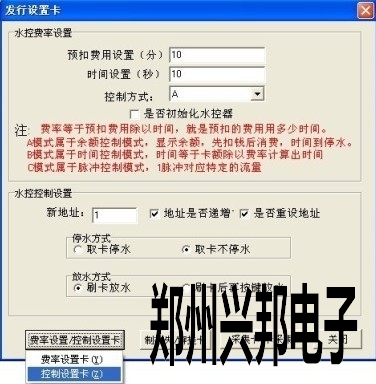 4、最后点击“费率设置/控制设置卡”按钮选择“控制设置卡”点击确定完成就可