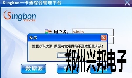 二天,登录软件,提示数据获取失败,原因可能是网络不通或配置有误。