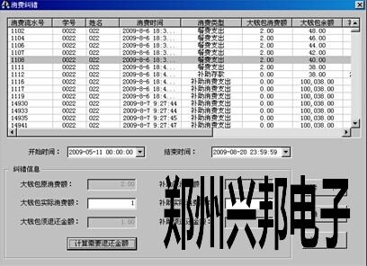 Ø 单击【读卡】,在记录表中单击选择消费错误的那条记录,输入应该消费扣除的实际大钱包及补助金额,