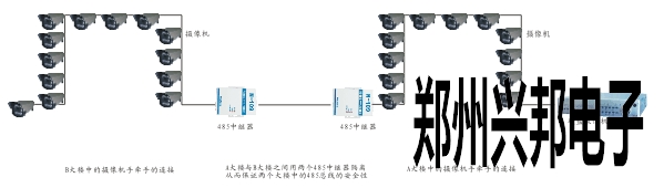 施工方采用485中继器解决上述问题。在AB教学楼里面各放一个485中继器,等于把一个485网络分成了3485网络,这样485网络就可以很稳定的运行。再由于教学楼之间的200m的距离是在两个485中继器中间,即使有强电干扰,由于485中继器中防雷?;ず凸飧衾牍δ埽不岜黄渌?,隔离。从而保证了485网络的稳定性及安全性。