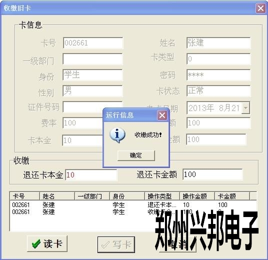 注销卡就是收缴过的旧卡点击【读卡】出现卡片的基本信息后点击【写卡】,提示收缴成功后点击【确定】即可。对于不用的旧卡可以使用此功能进行收缴,收缴一定要在数据采集完成之后进行。