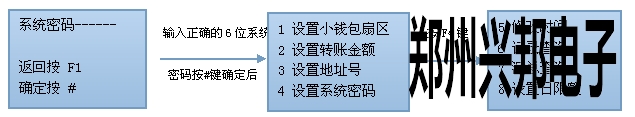 ①按1号键进入设置小钱包扇区号界面,如下图所示,输入要设置的扇区号即可;