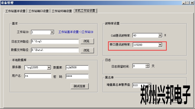 本机工作站设置中,串口通讯波特率要选择 115200,然后启动采集就可以通讯了