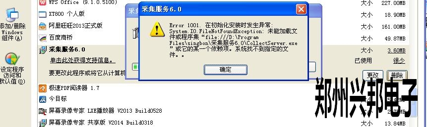 在卸载采集服务的时候,出现了Error:1001.在初始化安装时发生异常,未能加载文件或程序集