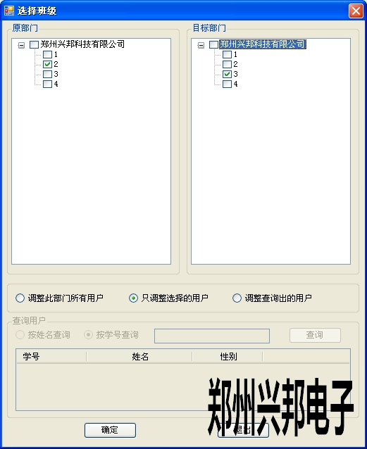 2、也可以通过调整部门来改变卡信息里的部门。调整人员的部门,可选择调整部门所有用户、只调选择的用户或者调整查询出的用户。