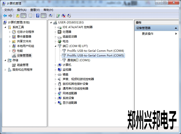 串口号查看方法,计算机右键——管理——设备管理如下图所示