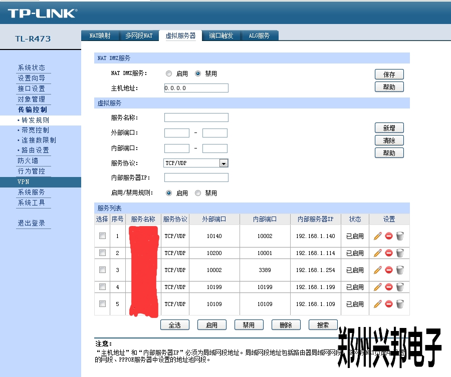 所有对该广域网服务端口的访问将会被重定位给通过IP地址指定的局域网网络服务器。