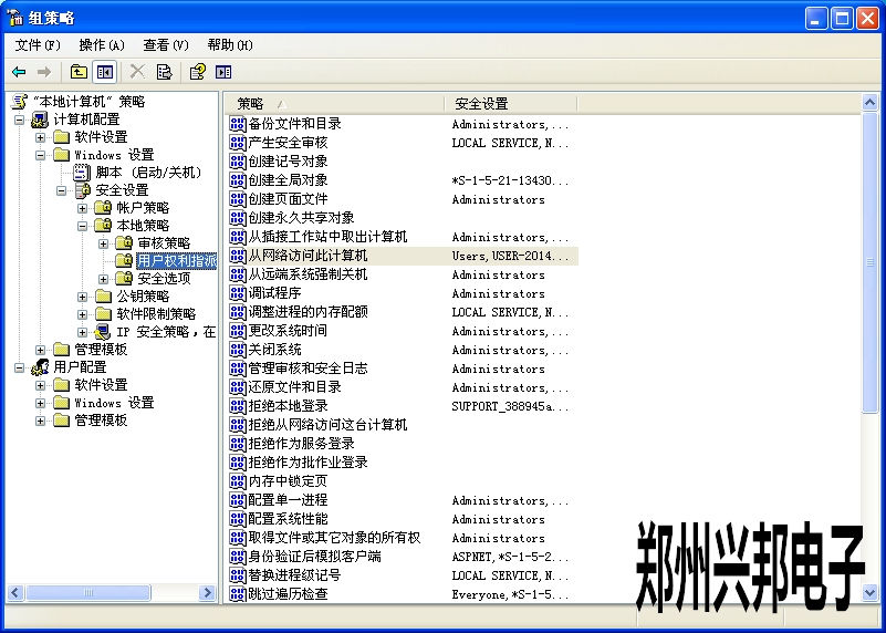 选择“计算机配置” →“windows设置” →安全设置→“本地策略” →“用户权利指派”打开
