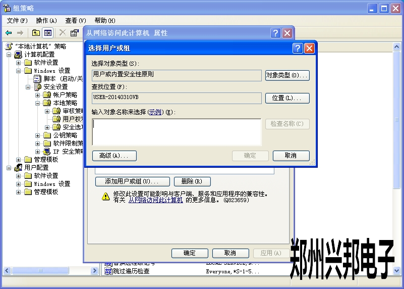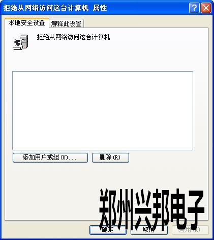 在“拒绝从网络访问”右击“属性”把里面的所有账户删除