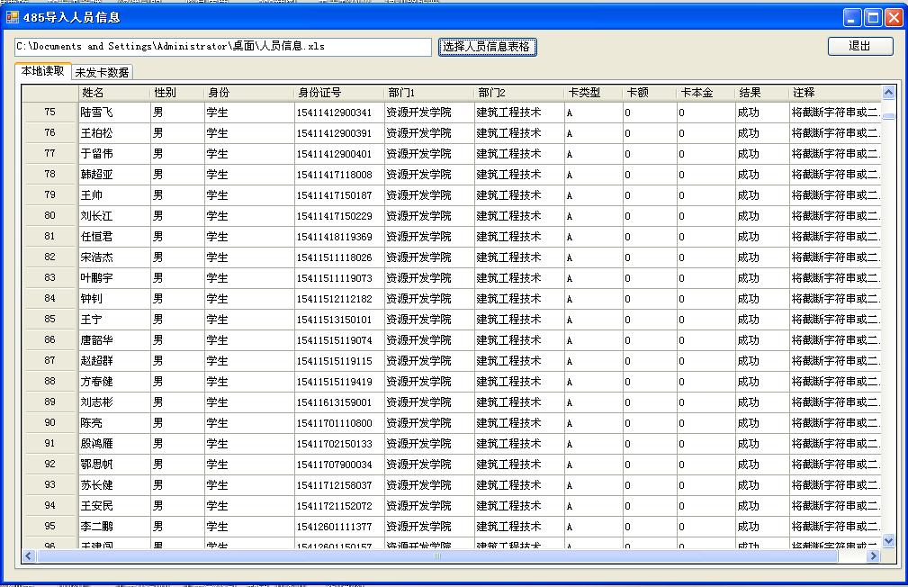 3、导入成功后,打开软件,在卡管理--批量制卡执行