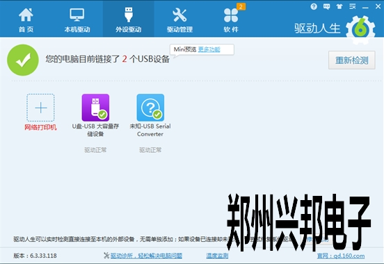 打开驱动人生,选择“外设驱动”,这里会显示装好的和没装的外设驱动,把没装好的驱动安装好;