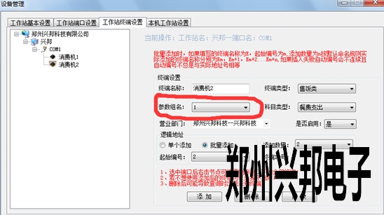 终端参数类型的选择:打开设备设置,在工作站终端设置里,添加终端里可以选择参数组名,或者添加终端后也可以修改选择的参数组名。