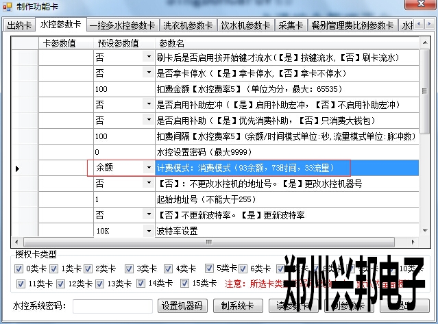 基于互联网一卡通平台的GPRS水控,在制卡中心--功能卡制作--水控参数卡中,可以看到有三种计费模式