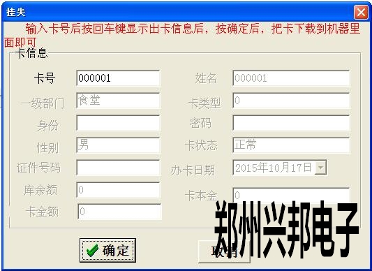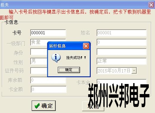 4、挂失成功后要连通消费机,下载一下挂失单,这样拿在机器上刷就会显示4—ERR挂失卡。