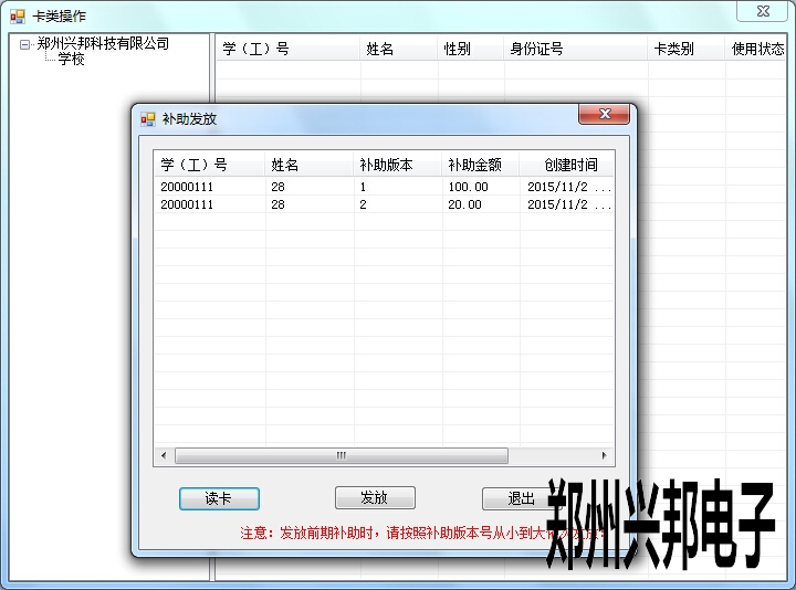 打开互联网一卡通平台,进入制卡中心 -- 卡管理。然后鼠标右键,选择 发放前期补助。