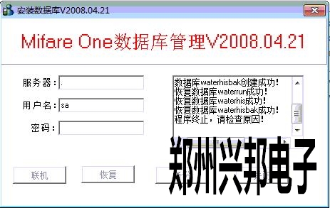 客户使用的食堂刷卡机,之前用的电脑坏了,重新更换的新电脑,重装的我们的局域网一卡通软件和数据库,在还原数据备份时程序终止,请检查原因!还原不成功备份,这是怎么回事呢?
