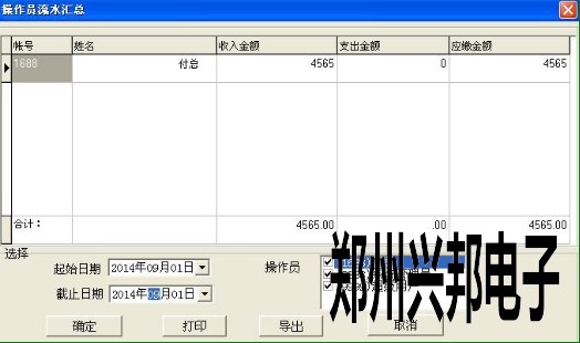 1、在操作员流水汇总里可以查看操作员当天的收入,支出和应缴金额。