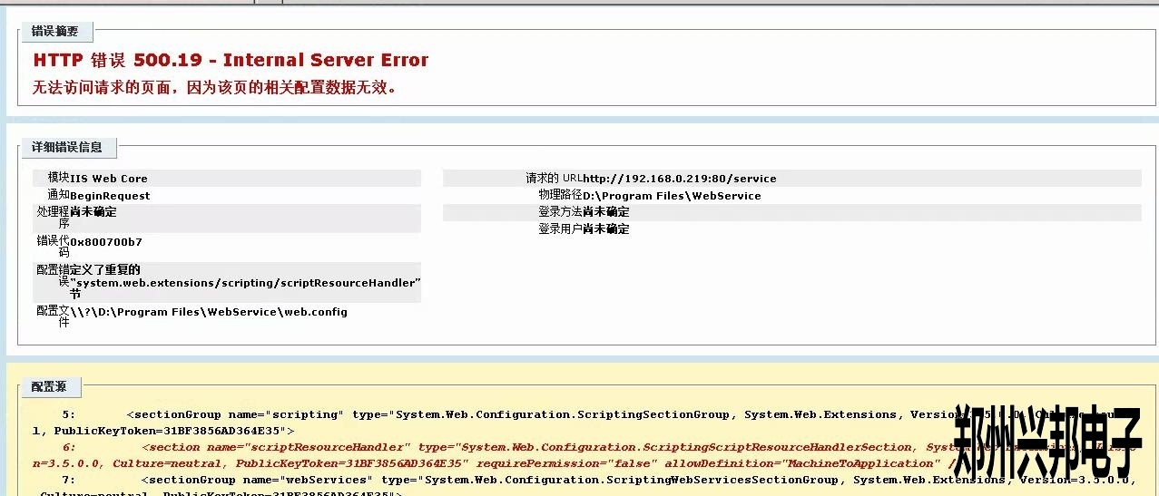 [文章内容简介]:客户使用的互联网一卡通食堂售饭机,在装好软件后配置有误,浏览service时提示应用程序中的服务器错误.
